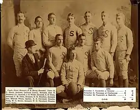 The 1891 Sewanee Tigers football team represented the Sewanee Tigers of Sewanee: The University of the South during the 1891 college football season. In the inaugural season of Sewanee football, the Tigers compiled a 1–2 record. The team's quarterback was Ellwood Wilson, considered the "founder of Sewanee football."[1] He had come from Lawrenceville, New Jersey, where he played football before, to Sewanee in 1889. While introducing the sport to Sewanee, he was forced to use a piece of wood shaped like a football until he found a real one. Sewanee's first intercollegiate game was the first instance of the Sewanee–Vanderbilt rivalry and Vanderbilt's second ever game. The win over Tennessee was that program's first game.