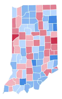 | Vanderburgh | 6,166 | 48.45% | 6,175 | 48.52% | 285 | 2.24% | 101 | 0.79% | -9 | -0.07% | 12,727 |