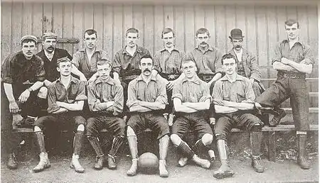 September 1893 was a perfect month for the "Valeites", achieving as they did seven wins out of seven games, scoring 30 goals in the process.[1] Although two of these came against whipping boys Northwich Victoria, they did take apart eventual runners-up Small Heath 5–0. However, this run came to an end with an 8–1 collapse at a highly physical Manchester City.[1] During this run, on 9 September 1893, Lewis Campbell became the first Vale player to score a hat-trick, and also four goals in one game, as his team brushed aside Walsall Town Swifts 5–0.[1]