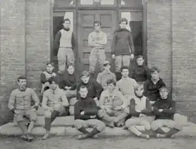![]() Everett Whittemore is seated holding football, Fred Hayes is standing at back-right | |