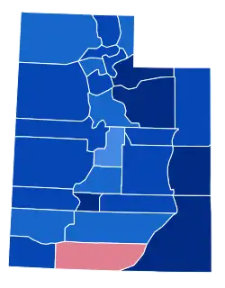 | Tooele | 1,684 | 86.01% | 274 | 13.99% | 1,410 | 72.01% | 1,958 | ||