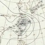 On September 8, a low pressure area formed east of the Philippines. It intensified into a tropical storm while moving to the northwest, passing near the Ryukyu Islands on September 17. After bypassing Taiwan to the north, the storm approached the mouth of the Yangtze in eastern China, before recurving to the northeast. It was last noted on September 21 in the Sea of Japan.[6][16] On the last day of the month, a typhoon formed west of Palau. Steered to the northwest, the storm moved across northern Luzon, hitting Nueva Ecija and Pangasinan. After emerging into the South China Sea, the storm turned to the northeast, brushing the Batanes islands as well as southeastern Taiwan on October 4. Crossing the Ryukyu Islands, the storm was last noted on October 6 to the southwest of Kyushu.[6][17]
