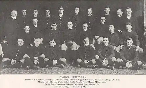"Guy "Chalky" Williamson was elected Captain of next year's football team at a meeting of the letter men immediately preceding the dinner on Thanksgiving evening. "Chalky" was elected over Reese on the second ballot by a vote of 15 to 10."[80]