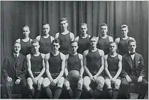 The 1915–16 season was a follow-up to an undefeated season, in which the Fighting Illini men's basketball team won both a national and Big Ten Conference championship. Coached by Ralph Jones, the Illini continued their winning ways by finishing the season with an overall record of 13 wins and 3 losses and a 9 win 3 loss conference mark. Taking second in the Western Conference to the National Champion Wisconsin Badgers men's basketball team. During the season, the Illini dropped two games to Northwestern and one to eventual champion Wisconsin, but the first loss to the Wildcats was the Illini's first-ever overtime game as Northwestern scored two points in the overtime period to beat Illinois, 23-21, February 12, 1916, at what is now the Kenney Gym Annex. The starting lineup included Gordon Otto, Dan W. Elwell and Ralf Woods rotating at the forward position, center C. G. Alwood, and guards Clarence Applegran and captain Ray Woods.[2] Woods was named an All-American for his work during this season.[3] Woods and Alwood were named All-Big Ten players for the season.