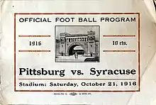 - 1 2 3 4 "Syracuse Thumped on Her Own Field By Blue and Gold". The Pittsburgh Sunday Post. October 22, 1916. p. 20 – via Newspapers.com.