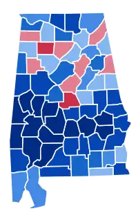 | Cullman | 2,566 | 42.06% | 3,492 | 57.24% | 37 | 0.61% | 6 | 0.10% | -926 | -15.18% | 6,101 |