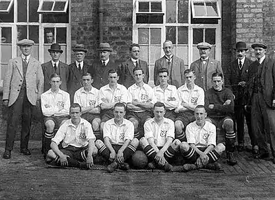 The first team was rather unsettled throughout the campaign thanks to a bureaucratic method of selection.[1] However, the Pursell brothers, Billy Briscoe, Tom Page; as well as new signings Ernest Collinge, Bob Connelly, Robert Firth, Jack Hampson, and Billy Agnew were all regular features. The club rotated between three goalkeepers, with a fourth also getting a game. Page was the club's top scorer with a meagre ten goals from all competitions, with Bob Connelly also netting seven. Following an injury to Walter Smith, Teddy Peers was signed from Wolves on an emergency loan.[1] Peers went on to become the first player to be capped whilst at the club when he turned out for Wales.[1]