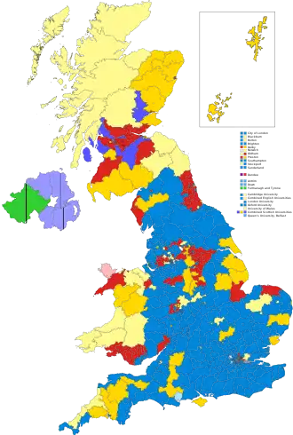 ![]() Colours denote the winning party—as shown in § Results | |||||||||||||||||||||||||||||||||||||||||||||||||||||||||||||||||||||||