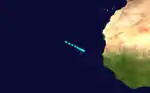 On September 20, a weak tropical storm was observed over the islands of Cape Verde. It tracked slowly northwestward through the archipelago. Ship observations were sparse in tracking the storm; it was last observed on September 22.[4]