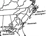 This article incorporates text from this source, which is in the public domain. - 1 2 James E. Hudgins (April 2000). Tropical Cyclones Affecting North Carolina since 1566 – An Historical Perspective (Report). Blacksburg, Virginia National Weather Service. Archived from the original on March 11, 2007. Retrieved 2008-03-18.