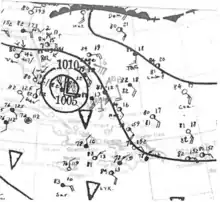 ![]() Surface weather analysis of the hurricane on September 3 near the Bahamas | |