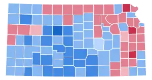 As of the 2020 presidential election, this is the last occasion the following counties have voted for a Democratic presidential candidate: Chase, Cheyenne, Decatur, Graham, Greenwood, Harper, Kiowa, Lincoln, Marion, Meade, Mitchell, Morris,[lower-alpha 1] Rawlins, Rooks, Scott and Seward.[7]