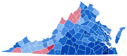 | Wise County | 4,538 | 75.66% | 1,448 | 24.14% | 12 | 0.20% | 3,090 | 51.52% | 5,998 |