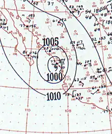 - ↑ Gunther, E. B.; Cross, R. L. (July 1984). "Eastern North Pacific Tropical Cyclones of 1983". Monthly Weather Review. American Meteorological Society. 112 (7): 1419–20, 1436–37. Bibcode:1984MWRv..112.1419G. doi:10.1175/1520-0493(1984)112<1419:ENPTCO>2.0.CO;2.