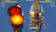 The arcade operates and plays like most standard shooters. The objective of every level is to shoot enemy planes, tanks, trains, turrets, battleships, and defeat the boss after each level. Unlike its predecessor, 19XX: The War Against Destiny, the game plays more like the early games in the series. Despite the opening description of the plane stats, both planes operate equally, and are only available to the first or second player respectively. The game borrows from 19XX in that it has a form of charge up system. By holding the fire button down, the charge bar will fill, and when full, the plane will fly up and become temporarily invincible. The game also has the standard bomb button, which causes Tomahawk Missiles to fly up the screen doing major damage to any enemies they hit.