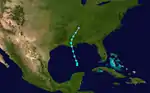Early on September 3, a tropical storm developed in the south-central Gulf of Mexico. Throughout much of its duration, the storm headed north-northwestward, gradually intensifying into a moderate tropical storm. At around 12:00 UTC on September 4, the storm made landfall near Cocodrie, Louisiana, while at its peak intensity. While moving inland, it passed west of New Orleans and east of Vicksburg, Mississippi. The storm curved northeastward and slowly weakened across the Southern United States. Late on September 5, it dissipated over Tennessee. Damage was minimal in Louisiana and Mississippi, likely amounting to less than $50,000.[8]