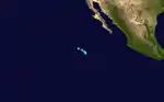 The only tropical cyclone that failed to intensify into a hurricane developed on August 12, 394 mi (634 km) south-southwest of Socorro Island. By early on August 13, the system had weakened, and was downgraded to a tropical depression only twelve hours after forming. The storm dissipated 707 mi (1137.80 km) south of Guadalupe Island later that day.[2]