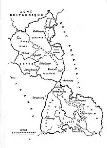 - ↑ Verordnung Nr. 87 Archived 2011-07-06 at the Wayback Machine of the French High Command in Germany regarding a referendum on the constitution and election of members of the state parliament in the individual states.