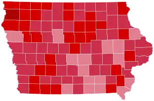 | Iowa | 5,625 | 67.27% | 2,514 | 30.06% | 223 | 2.67% | 3,111 | 37.20% | 8,362 |