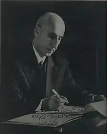 The official pretext for the start of the coup was Mosaddegh's decree to dissolve Parliament, giving himself and his cabinet complete power to rule, while effectively stripping the Shah of his powers.[13][14][15] It resulted in him being accused of giving himself "total and dictatorial powers." The Shah, who had been resisting the CIA's demands for the coup, finally agreed to support it.[13][14][15] Having obtained the Shah's concurrence, the CIA executed the coup.[52] Firmans (royal decrees) dismissing Mosaddegh and appointing General Fazlollah Zahedi (a loyalist who had helped Reza Shah reunify Iran decades earlier)[14] were drawn up by the coup plotters and signed by the Shah. Having signed the decrees and delivered them to General Zahedi, he and Queen Soraya departed for a week-long vacation in northern Iran.[53] On Saturday 15 August, Colonel Nematollah Nassiri,[14] the commander of the Imperial Guard, delivered to Mosaddegh a firman from the Shah dismissing him. Mosaddegh, who had been warned of the plot, probably by the Communist Tudeh Party, rejected the firman and had Nassiri arrested.[54][55][56] Mosaddegh argued at his trial after the coup that under the Iranian constitutional monarchy, the Shah had no constitutional right to issue an order for the elected Prime Minister's dismissal without Parliament's consent. However, the constitution at the time did allow for such an action, which Mosaddegh considered unfair.[15][57][58] Mosaddegh's supporters took to the streets in violent protests.[13] Following the failed coup attempt, the Shah, accompanied by his second wife Soraya Esfandiary-Bakhtiari and Aboul Fath Atabay[59] fled to Baghdad. Arriving unannounced, the Shah asked for permission for himself and his consort to stay in Baghdad for a few days before continuing on to Europe.[53] After high-level Government consultations, they were escorted to the White House, the Iraqi Government's guest house, before flying to Italy in a plane flown by Mohammad Amir Khatami.[59]