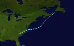 A disturbance that moved out of the Intertropical Convergence Zone (ITCZ) developed into a tropical depression to the east of British Honduras (modern day Belize) on June 2.[3][8]: 177 Moving slowly northward to north-northeastward across the Caribbean Sea and Gulf of Mexico, the depression failed to intensify significantly. Shortly after 12:00 UTC on June 6, it made landfall just south of Cedar Key, Florida, with winds of 30 mph (48 km/h). Early the following day, the depression emerged into the Atlantic Ocean near Jacksonville and began to strengthen and move northeastward. While located offshore South Carolina on June 7, the system became a tropical storm. Further deepening occurred slowly, with the storm peaking with winds of 70 mph (110 km/h) late on June 9.[3] By June 11, it was absorbed by an extratropical low while located about 350 mi (560 km) south-southeast of Sable Island in Nova Scotia.[8]: 177
