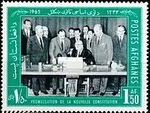 The 1964 Constitution of Afghanistan was the supreme law of the Kingdom of Afghanistan from 1964 to 1973, when it was annulled following a coup d'état[1] though parts of the constitution were restored by future governments from 2002 to 2004 and from 2021 to 2022. It was drafted by a committee of foreign-educated Afghans, including Sardar Abdul Hakim Ziai and Sardar Abdul Rahim Ziai, appointed for the task by the Afghan King, Mohammad Zahir Shah (from 1933 to 1973). The primary goals of the Constitution were to prepare the government and the people for gradual movement toward democracy and socioeconomic modernization. A Loya jirga (grand council of notables) had debated, modified and approved its innovations, which included a bill of rights for all Afghans, explicitly including women. After public review, the constitution was put into effect in October 1964.[2]