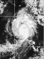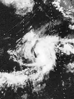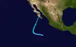 The first storm to make landfall, Katrina formed on August 30.[14] It became the third hurricane of the season 30 hours after it was named. The night that Katrina became a hurricane, it made landfall on the Baja Peninsula with winds of 85 miles (137 km) per hour. It emerged soon after and paralleled the peninsula until making landfall at the head of the Bay of California. It rapidly weakened to a tropical depression and dissipated over Arizona.[15][16] In Mexico, Katrina caused significant damage to parts of San Felipe. A total of 2500 people were left homeless and 60 ships were sunk. At least one person was killed.[17][18]