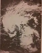 On September 16, Sarah made landfall on Wake Island at peak intensity, causing widespread damage. This typhoon was the third tropical cyclone since the beginning of observations in 1935 to bring typhoon-force winds to Wake Island, following an unnamed typhoon which struck on October 19, 1940 (Tomita, 1968), which brought 120 knot winds to the island, and Typhoon Olive in 1952, which lashed the island with 150 knot winds. Coincidentally, Olive's attack on the island occurred on September 16, exactly 15 years prior to Sarah's direct hit.[2]