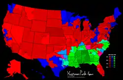 Nixon also became the first non-incumbent vice president to be elected president, something that would not happen again until 2020, when Joe Biden was elected president.[3] This also remains the most recent election in which the incumbent president was eligible to run again but was not the eventual nominee of that person's party. Nixon's victory also commenced the Republican Party's lock on certain Western states that would vote for them in every election until 1988, allowing them to win the presidency in five of the six presidential elections that took place in that period.