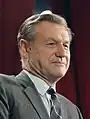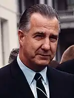 Because Goldwater had done well in the Deep South, delegates to the 1968 Republican National Convention included more Southern conservatives than in past conventions. There seemed potential for the conservative Reagan to be nominated if no victor emerged on the first ballot. Nixon narrowly secured the nomination on the first ballot, with the aid of South Carolina Senator Strom Thurmond, who had switched parties in 1964.[13] He selected dark horse Maryland Governor Spiro Agnew as his running mate, a choice which Nixon believed would unite the party, appealing to both Northern moderates and Southerners disaffected with the Democrats.[14] Nixon's first choice for running mate was reportedly his longtime friend and ally Robert Finch, who was the Lieutenant Governor of California at the time. Finch declined that offer, but later accepted an appointment as the Secretary of Health, Education, and Welfare in Nixon's administration. With Vietnam a key issue, Nixon had strongly considered tapping his 1960 running mate, Henry Cabot Lodge Jr., a former U.S. senator, ambassador to the UN, and ambassador twice to South Vietnam.