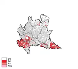 | Province | DC | PCI | PSI | PSU | PLI | MSI | PSIUP | PRI | Total |
