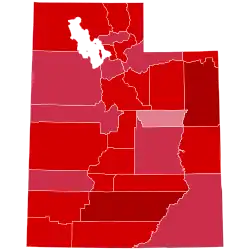 Utah overwhelmingly voted for incumbent President Richard Nixon (R-California) with over 67 percent of the popular vote, beating Democratic South Dakota Senator George McGovern with a margin of over forty percent,[1] carrying every county in the state. Nixon carried every county with over sixty percent of the vote except for Carbon County, which had typically been the most Democratic area of the state.[2] This occurred even as incumbent Democratic Governor Cal Rampton won reelection with nearly 70% of the vote on the same ballot. [3] U.S. Representative John G. Schmitz (R-California) of the American Independent Party received 5.97 percent of the popular vote, and his results in Utah proved to be his third strongest state in the 1972 election after Idaho and Alaska.