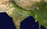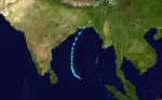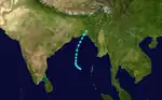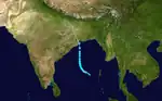 This system formed as a tropical depression in the southern Bay on December 5, strengthening into a tropical storm as it turned north-northwest on December 5, then to near-hurricane strength on December 6. The cyclone recurved, striking Indian near Calcutta on December 9, though its main impacts were across Bangladesh.[4]