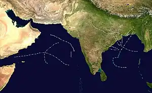- ↑ "Frequently Asked Questions: What is the annual frequency of Cyclones over the Indian Seas? What is its intra-annual variation?". India Meteorological Department. 2012. Archived from the original on May 21, 2015. Retrieved June 8, 2012.