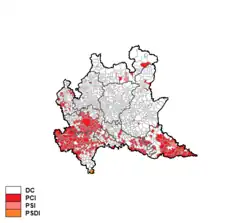 Despite the huge jump made by the Communist Party, which gained nearly 7 point more than five years before and won the majority of votes in Milan, the Christian Democracy party remained the largest party and incumbent president Cesare Golfari was able to form a second center-left government with the support of the PSI, the PSDI and the PRI.