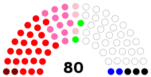 | Parties | Votes | % | Seats | +/- | |