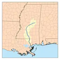 Map showing the Pearl River in Mississippi.