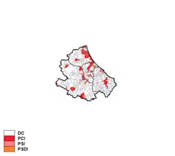 Christian Democracy was by far the largest party, while the Italian Communist Party came distantly second.