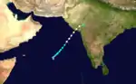 An area of convection south of the previous storm slowly organized into a tropical storm on October 16. It tracked northwestward, reaching a peak of 60 mph winds before hitting southeastern India on the 20th as a weakened 50 mph storm. 60 casualties can be attributed to this system and 400 huts were damaged.