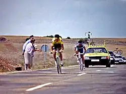 Fabio Parra during the final time trial from Valladolid to Medina del Campo where he started only 2 seconds behind Delgado