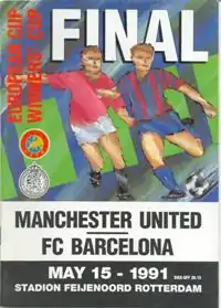 The 1991 European Cup Winners' Cup final was a football match played between Manchester United and Barcelona on 15 May 1991 at Feijenoord Stadion, Rotterdam. It was the final match of the 1990–91 European Cup Winners' Cup and the 31st European Cup Winners' Cup final. It came at the end of the first season of the reintroduction of English clubs into European competition after the ban following the Heysel disaster in 1985.