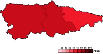 ![]() Constituency results map for the General Junta of the Principality of Asturias | ||||||||||||||||||||||||||||||||||||||||||||||||||||||||||||||||||||||||||||||||||