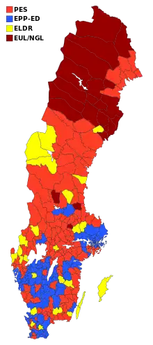 | Swedish Social Democratic Party | 657,497 | 25.99 | 6 | –1 | |