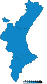 ![]() Constituency results map for the Corts Valencianes | |||||||||||||||||||||||||||||||||||||||||||||