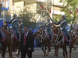 The 1st Cavalry (Horse Guards) Regiment "Grenadiers" (Spanish: Regimiento Escolta Presidencial n.º 1 «Granaderos») is the senior cavalry regiment of the Chilean Army, which serves as the Horse Guards unit providing the ceremonial escort in parades and ceremonies to the President of Chile, the Supreme Commander of the Chilean Armed Forces. It provides the guard during flag raising ceremonies monthly in Santiago, the national capital. Together with the 3rd Cavalry Regiment "Hussars" it forms the remaining mounted components of the army in active service.