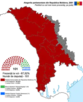 Parliamentary elections were held in Moldova on 25 February 2001.[1] The result was a victory for the Party of Communists of the Republic of Moldova (PCRM), which won 71 of the 101 seats.[2]