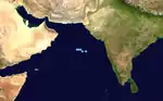 An area of convection formed west of Sri Lanka on October 31, organizing around a circulation center. Low wind shear allowed slow development,[25] and a low-pressure area developed on November 1 in the southeastern Arabian Sea. The following day, a depression formed off the southwest coast of India.[1] Moving northward, the system's convection continued to organize around the center, and the JTWC classified it as Tropical Cyclone 04A on November 4.[25] The IMD upgraded it to a deep depression on the next day as the storm began moving westward.[1] Despite good outflow, the convection failed to intensify further and was limited to the eastern portion, and the JTWC did not estimate 1 minute winds higher than 75 km/h (45 mph).[25] The IMD only assessed a peak of 55 km/h (35 mph).[1] Drier air from the north caused the thunderstorms to weaken and expose the circulation.[25] The IMD downgraded the system to a remnant low on November 7,[1] and the remnants continued to the west-southwest, passing near Socotra Island. On November 9, the remnant circulation brushed the coast of Somalia after redeveloping some convection, but there was no redevelopment.[25]