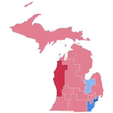 Kerry won Michigan with 51.2% and by a margin of 3.4%. While a reduced margin with respect to Gore's in 2000, the state trended Democratic in 2004 relative to the nation.[8] Bush won a majority of the state's counties and congressional districts, holding Kerry to only 15 counties (whereas Gore had carried 24). But he underperformed previous Republicans in two large suburban counties that had recently been Republican strongholds in the state, Oakland and Macomb Counties. Kerry narrowly held onto Oakland County, which has a more white-collar populace and had voted Republican in every election from 1940 through 1992 save 1964, and had voted to re-elect Bill Clinton in 1996 by only 4.3%. Bush did flip the more blue-collar Macomb County, which Gore had become the second Democrat to carry after a twenty-year run of voting Republican from 1972 through 1992, but he carried it by only 1.4%, making it still slightly bluer than the nation. Meanwhile, Kerry maintained the traditional Democratic domination of Wayne County, winning about the same 69% vote share in it that Gore had won in 2000. Michigan had voted Republican in every election from 1972 through 1988, in all of which Oakland and Macomb had given the Republican a healthy margin.