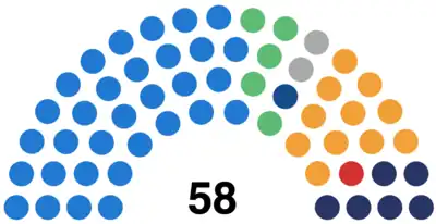 Last election 29 seats, 43.9% 13 seats, 25.8% 6 seats, 5.6%