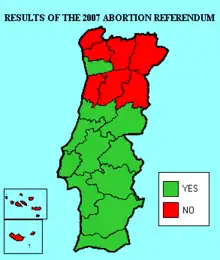 An abortion referendum took place in Portugal on 11 February 2007, to decide whether to legalise abortion up to ten weeks. The referendum was the fulfillment of an election pledge by the governing Socialist Party of Prime Minister José Sócrates.[1]